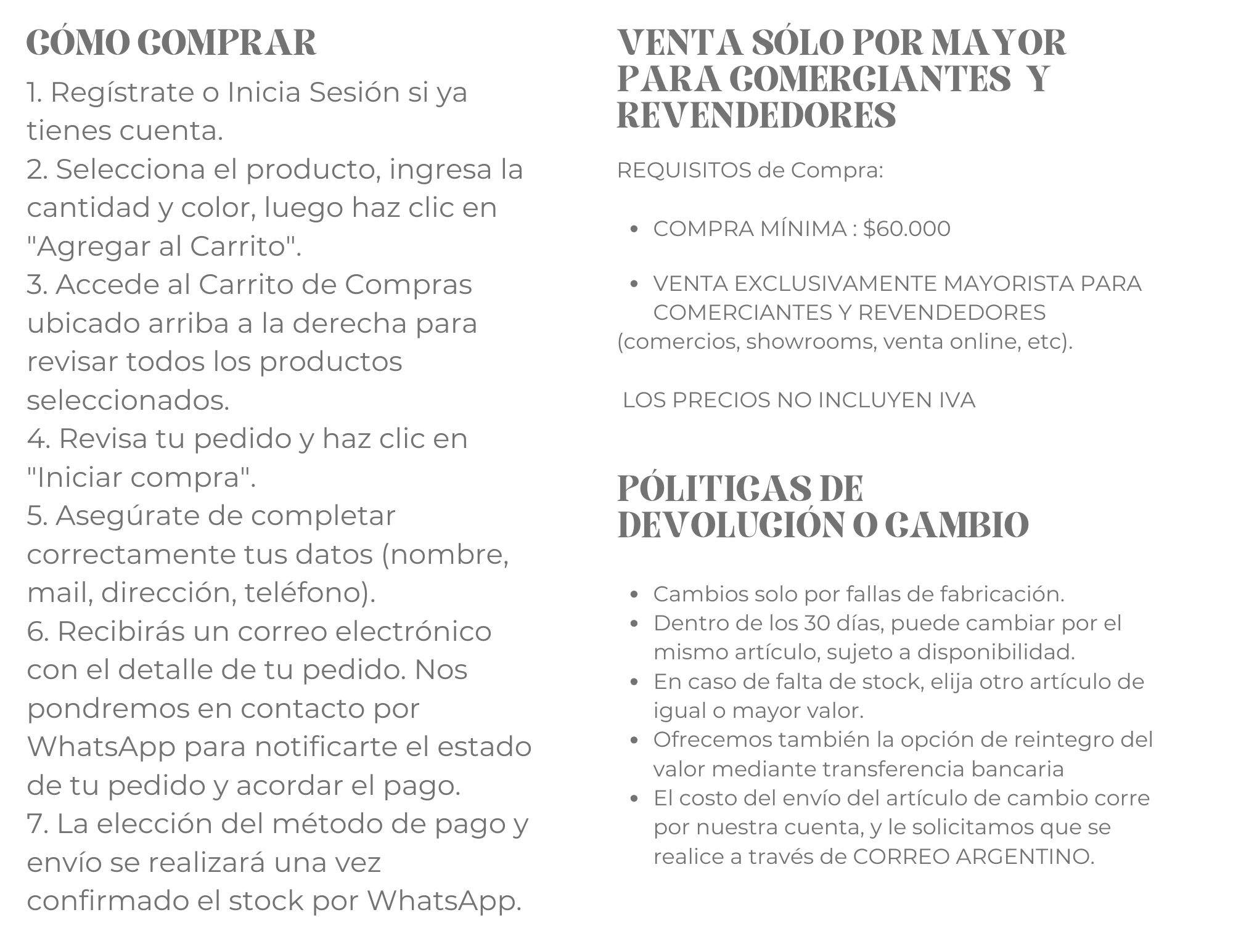 VENTA MAYORISTA đź’› COMPRA MĂŤNIMA $60.000 đź’› LOS PRECIOS NO INCLUYEN IVA